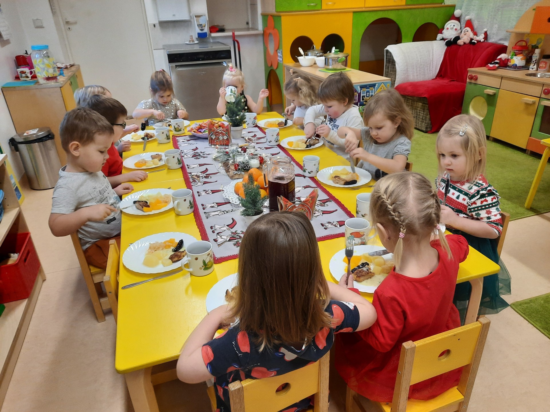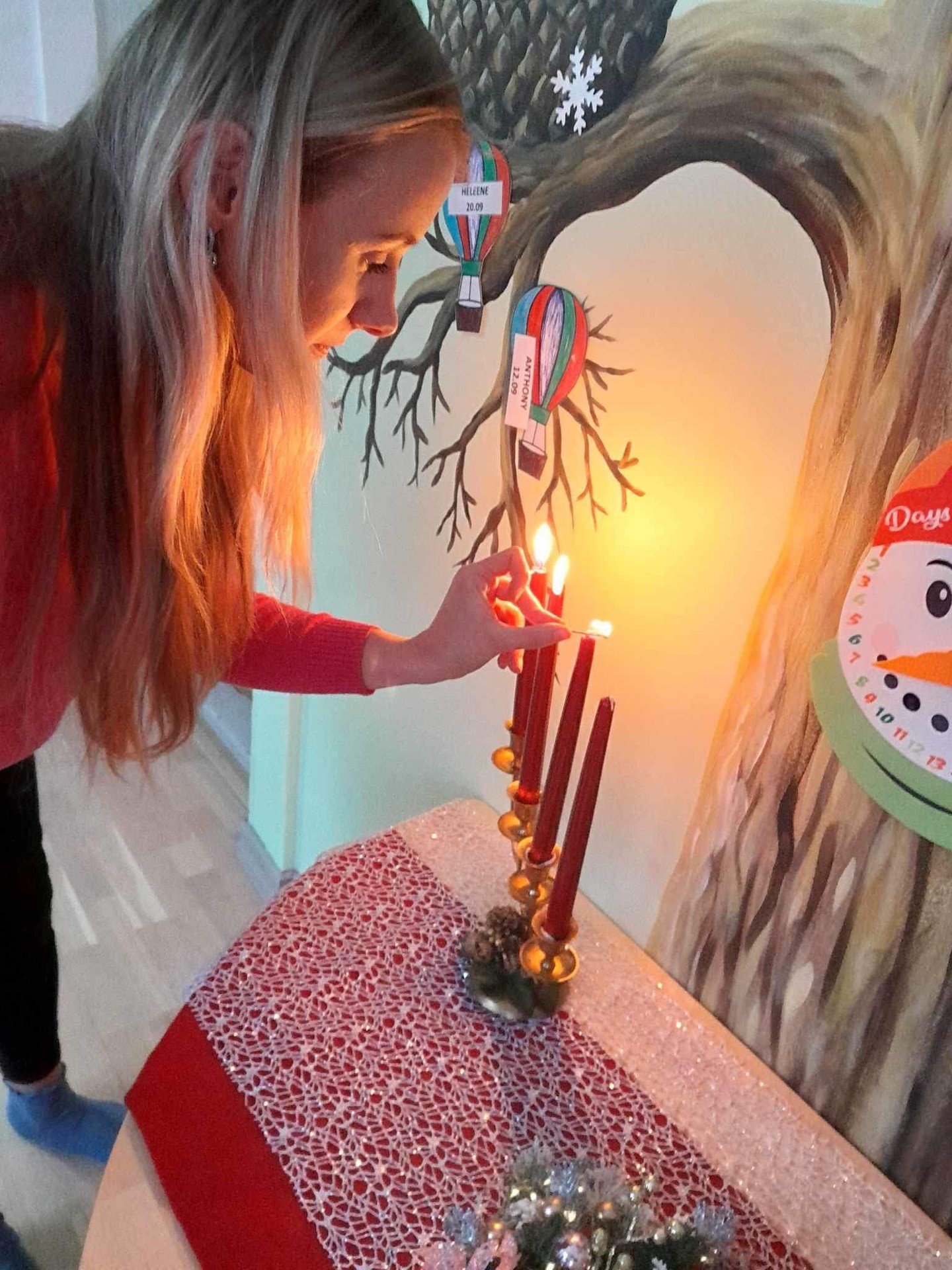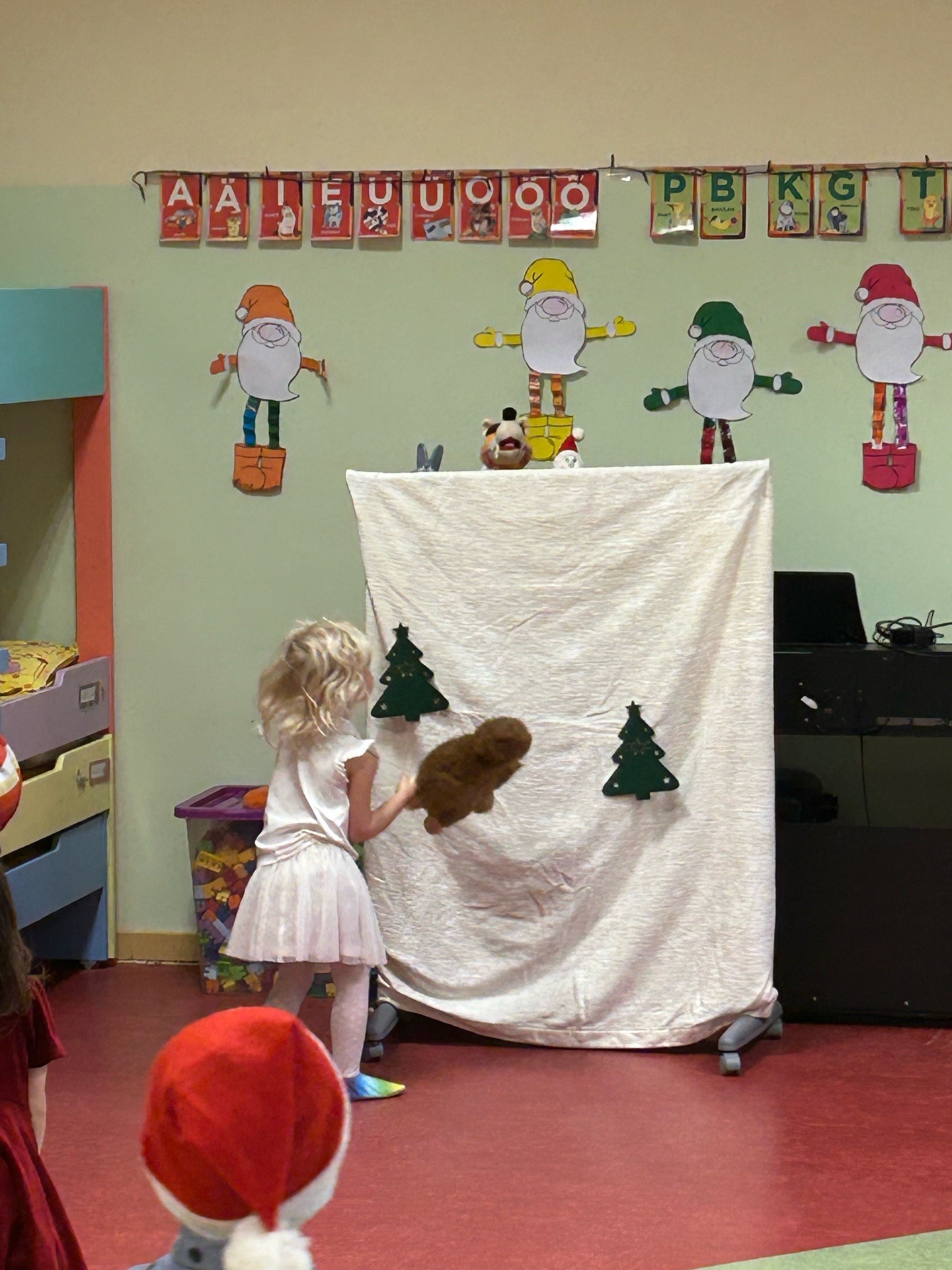 Soe õppekoha detsember algas imearmsa esimese advendi tervitusega päkapikkude poolt, kus krõbedad külmakraadid ei heidutanud ning päkapikud võtsid lapsed ning vanemad vastu piparkookidega. Igal advendil süüdati küünal ning lapsi rõõmustas õpetajate ettevalmistatud jõulunäidend. Rühmad käisid koos lastevanematega erinevatel jõulumaadel, söödi ühiselt pidulikku lõunat ning peeti jõulupidusid. Samuti valmistati südamlikke jõulukaarte eakatele kogukonna liikmetele, levitades sellega soojust ja headust.