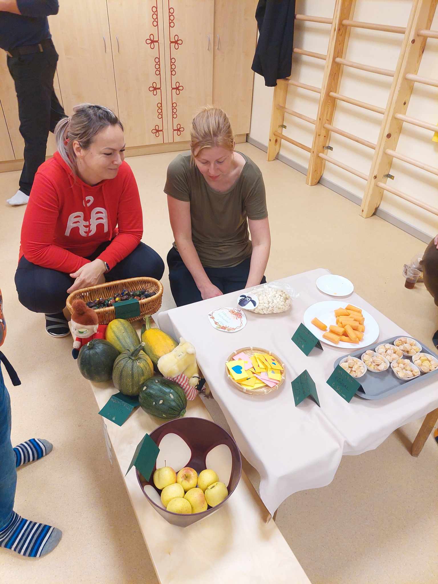 Iga rühm oli väljas oma müügikohaga, väiksemate laste rühmadel olid müüjateks õpetajad, suuremad lapsed aga proovisid juba ka ise rahatarkusi koguda müüja ametit pidades. Kaubavalik oli väga mitmekesine ning valikus oli nii hoidiseid, küpsetisi, meisterdusi, puuvilju, juurvilju jpm.